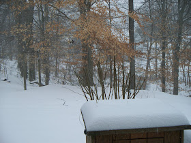 Well, we are just having a lovely day here...the snow is still coming down, although much more lightly, and I think we have four or five inches of snow. Todd is sledding on our backyard hill with some of the neighbors, and I am inside babysitting my wheat bread (which is baking right now and smells so good I want to lick the oven door) and intermittently reading one of the creepiest books I've ever read (The Haunting of Hill House, Shirley Jackson.)
